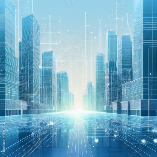 Modern buildings, abstract city network connection, city landscape backgrounds