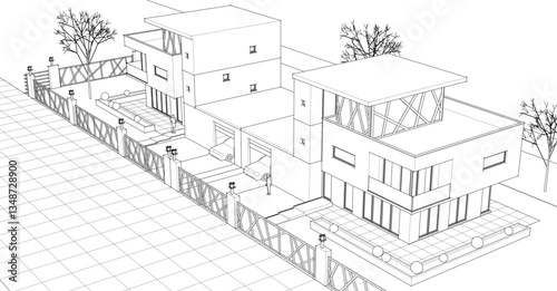 modern townhouse sketch 3d illustration