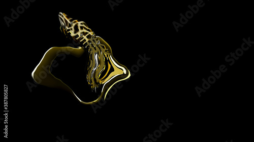 Mysterious, beautiful, luxury flowing gold. Metal Metamorphosis. Melted Gold Style. 3d rendering