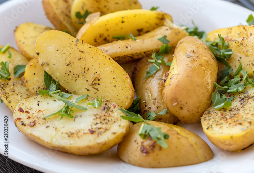 background, closeup, cooked, cooking, cut, delicious, dill, dinner, dish, food, fresh, garlic, gold, hot, lunch, meal, natural, plate, potato, roast, roasted, rosemary, rustic, salt, sliced, snack, sweet, tasty, vegetable, vegetarian, yellow, parsley, steamed, boiled, prepared, herb, sprinkled, baked