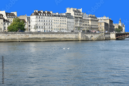 seine, paris, quay, summer, cygnet, house, apartment building, france, water, flow, river