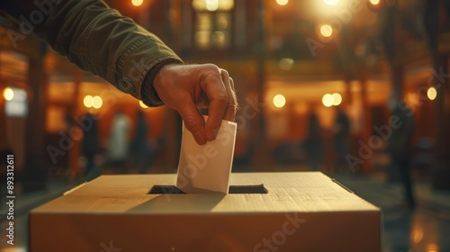 realistic and clean scene of a hand placing a voting ballot into a ballot box