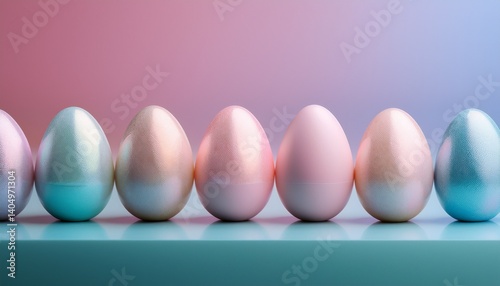 Row of colorfully dipped Easter eggs gradually fading into the distance, resting on a smooth