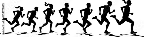 running, silhouette, exercise, fitness, athlete, physical exercise, motion, people, human, jog, race, marathon, sprint, health, training, speed, cardio, action, active, outdoors, sport, team, track, runner, group, male, female, movement, shadow, black, vector, outline, graphic, lifestyle, energy, athletic, physical, competition, walking, fast, endurance, body, shape, posture, form, footrace, dynamic