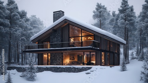 rustic, cabin, sloped, roof, iron, snow, rail, pine, tree, blanketed, winter, cosy, charming, serene, natural, protective, functional, artistic, scenic, unique, seasonal, elegant, inviting, stylish, vibrant, warm, modern, peaceful, countryside
