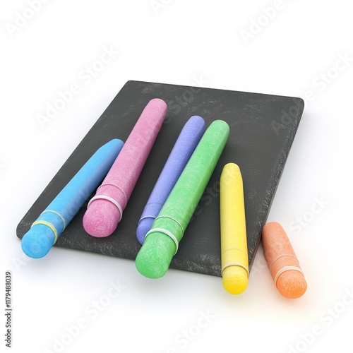 Single 3D Chalk and Markers – Office or Classroom Supplies, Colorful Writing Tools, Isolated on White Background