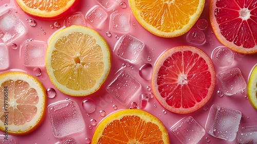 slice, citrous, ice cube, background, summer, pink, top, fresh, orange, grapefruit, lime, lemon, mix, vitamin, juicy, tropical, vegetarian, vegan, flat, lay, closeup, tasty, delicious, piece, wallpaper, copy, space, table, assortment, pattern, slice, collection, freshness, banner, sliced, cut