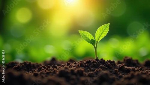 - Thriving coffee seedlings, lush green foliage, sun-dappled nature backdrop, growth symbol, sprout, nature