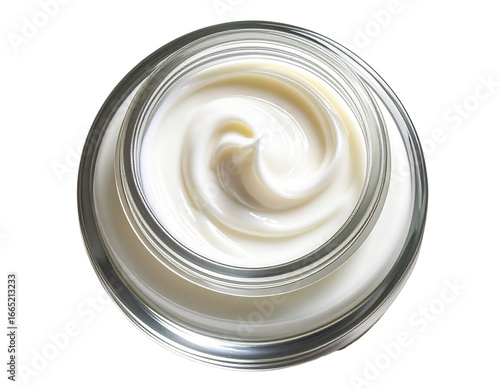Top-Down View of Cosmetic Glass Jar with White Cream, Minimalist Mockup, isolated on transparent background png