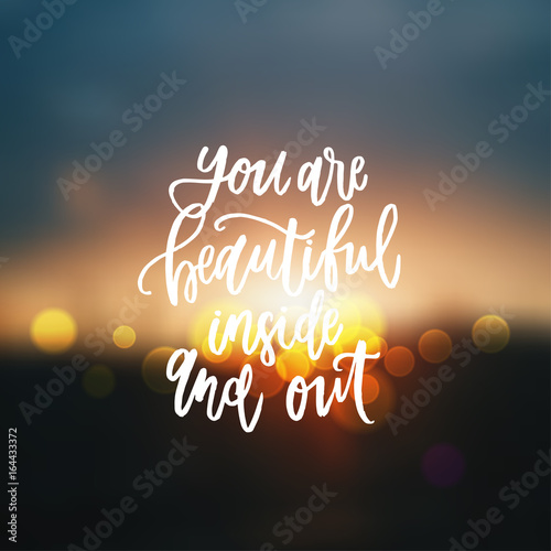 trendy hand lettering poster. Hand drawn calligraphy you are beautiful inside and out
