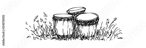 drum, drum, tribal, percussion, music, sound, rythm, folk, traditional, hand drum, culture, ceremony, musical, festival, vintage, nature, engraving, retro, outline, doodle, vignetting, vector, illustration