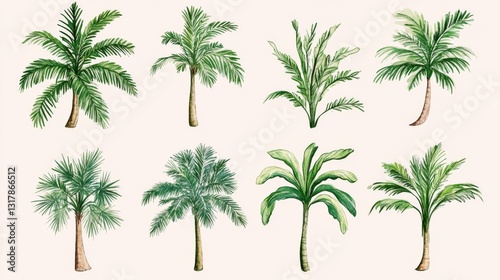 Vintage Hand-Drawn Palm Tree Doodle Illustration Set