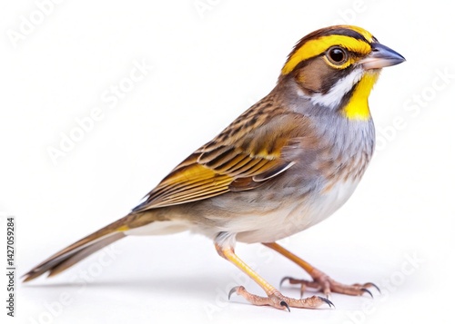 yellow throated bush sparrow isolated on white background
