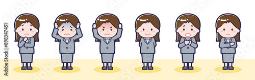 woman, adult, 30s, employee, front, smile, joyful, fun, happy, positive, happy, enjoyment, positive, light, lively, sad, stern, depression, spicey, repentance, embarrassment, impatience, apprehension, anger, anger, moody, prayer, wish, expression, feeling, icon, pose, sweet, people, set, infographic, illustration, vector