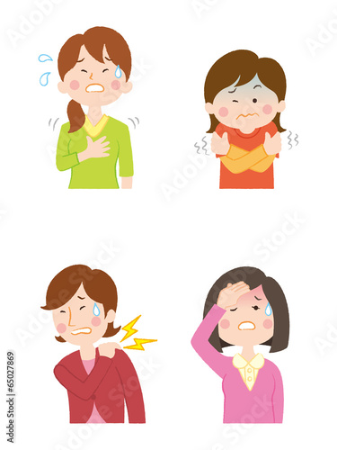 fatigue, fatigue, overwork, marode, pulsation, asthma, heartburn, panting, chill, chill, cold, fever, heat, symptom, spicey, stern, patience, unrest, apprehension, painful, pain, torment, woman, illustration, illustration, people, pose, cut