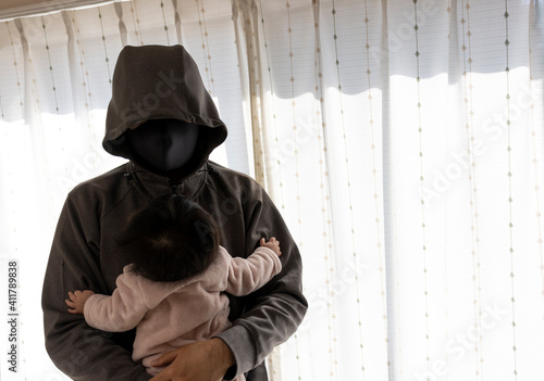 baby, kidnap, man, criminal, crime, copy space, white background, prey, children, man, foul, girl, portrait, japanese, criminal, cache, black, asian, hood