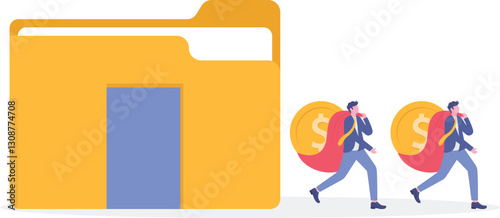 currency, file folder, ring binder, briefcase, business, 2015, abstract, adult, archive, burglar, cartoon, computer crime, concept, crime, danger, desire, document, dollar sign, e-business, greed, idea, illustration, making money, male, man, network security, occupation, people, problem, risk, social issue, spy, symbol, thief, us currency