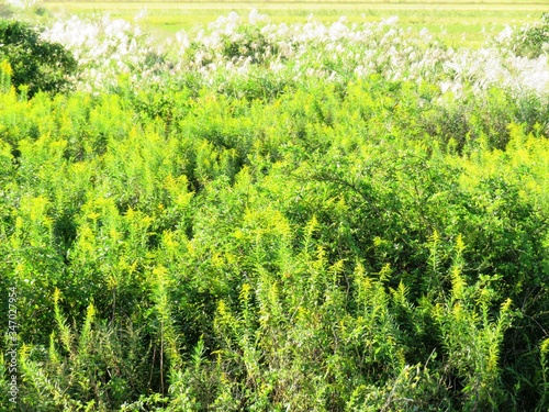 日本の田舎の風景 10月 セイタカアワダチソウとススキ