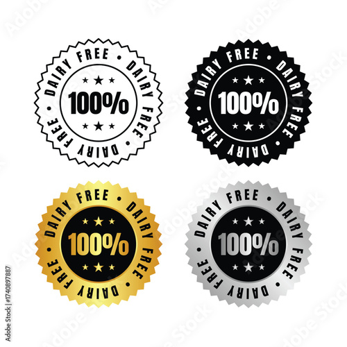 dairy, free, label, seal, badge, icon, vector, gold, silver, black, white, isolated, product, food, allergy, diet, healthy, tags, symbol, graphic, design, illustration, template, element, round, star, quality, guarantee, certified, premium, collection, set, assurance, best, choice, option, selection, available, suitable, alternative, label, different, metallic, monochrome, colours, experiencing, starburst, shape, text