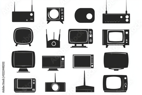 151. Black television Icon Set Vector Silhouette Design Isolated on White Background --ar 3:2 --v 6.1 Job ID: f87db88f-af90-4c3f-a7f0-e1c085b44ea7