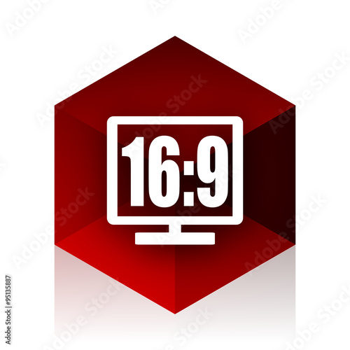 16 9 display red cube 3d modern design icon on white background