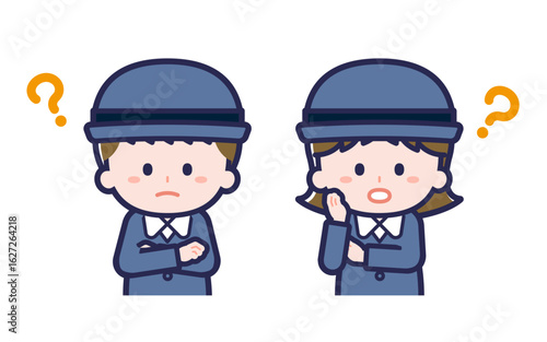 children, toddler, kindergarten, preschool, uniform, waist up, front, problem, embarrassment, apprehension, thinking, question, expression, feeling, icon, pose, sweet, people, set, two people, boy, woman, couple