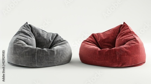 2 Collection set of red maroon grey gray blank cushion pillow cover, front side lying view on transparent cutout