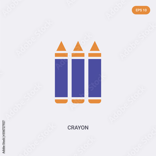 2 color Crayon concept vector icon. isolated two color Crayon vector sign symbol designed with blue and orange colors can be use for web, mobile and logo. eps 10.