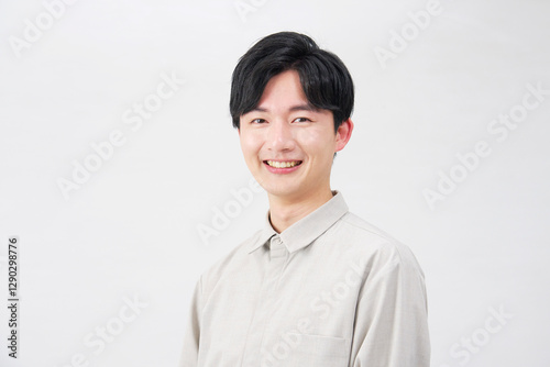 man, smile, portrait, white background, young, cool, refreshing, relax, waist up, asian, japanese, alone