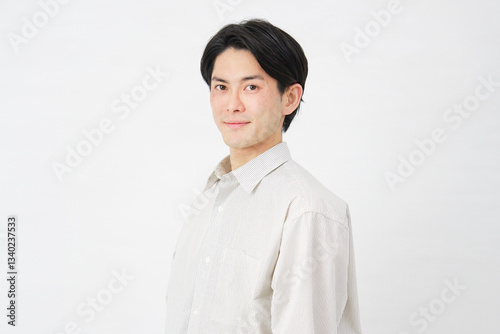 man, smile, smile, white background, portrait, young, shirt, cool, good-looking, waist up, japanese, alone, asian