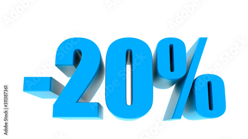 -20 percent off discount promotion sale. 3D Render. 3D-Illustration percent discount collection for your unique selling poster, banner ads. Christmas, Xmas sale and more