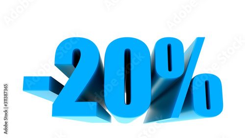 -20 percent off discount promotion sale. 3D Render. 3D-Illustration percent discount collection for your unique selling poster, banner ads. Christmas, Xmas sale and more