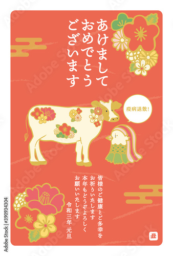 cow, illustration, vector, template, business, gold, pine, vertical, 2021, new year, sweet, new year's day, postcard, corona, monster