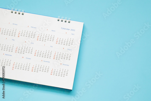 2021 calendar page on blue background business planning appointment meeting concept