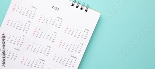 2022 calendar page on blue background business planning appointment meeting concept