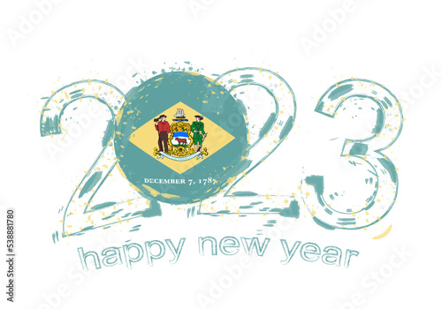 2023 Year in grunge style with flag of Delaware.