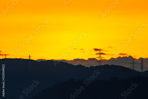 東京湾から眺める美しい夕陽と富士山のシルエット。 東海汽船東京湾〜伊豆諸島航路のさるびあ丸船上にて。 2024
