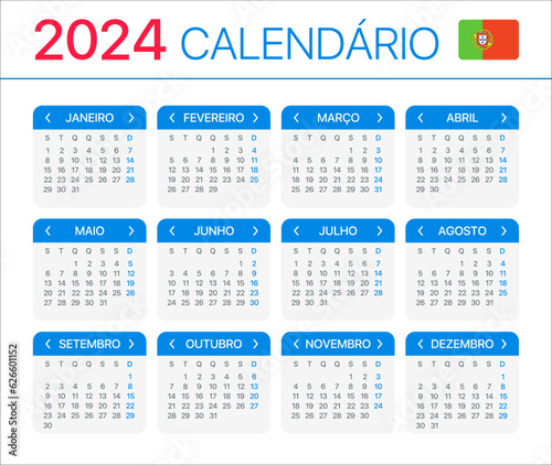 2024 Calendar - vector template graphic illustration - Portuguese version