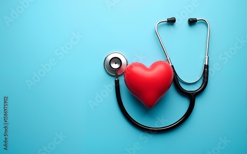 2025 Happy New Year for health care.heart health, health insurance concept, new year resolutions goal. yearly health checks and healthy trend. Red heart and stethoscope on blue background
