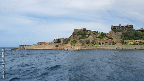 sea, water, sky, landscape, travel, summer, architecture, tour tourism, tourist attraction, journey, view, island, devastation, coal cellar, world heritage, tower, asia, orient, japan, kyushu, country, nagasaki, coal, digging, rebar, history, concrete, apartment, desert island