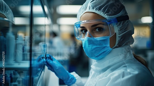 laboratory, technician, protective, gear, handling, advanced, tool, biotechnology
