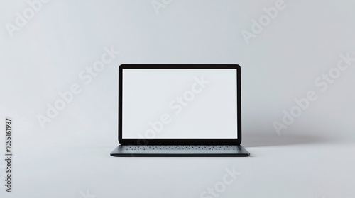 2410 12.A modern laptop featuring a blank white screen display, set against a plain white background. The realistic mockup highlights the slim design of the device, with the empty screen ready for