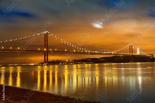 25 de Abril bridge over Tagus river in Lisbon at night