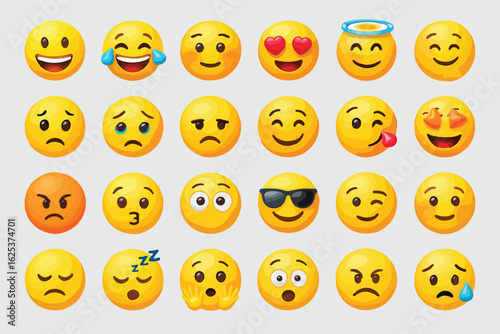 25 Emoji Icons Pack – Smileys, Emoticons, Expressions, Faces, Reactions, Laugh, Love, Angry, Crying, Cool, Sleepy, Shocked, Happy, Sad, Cartoon Stickers