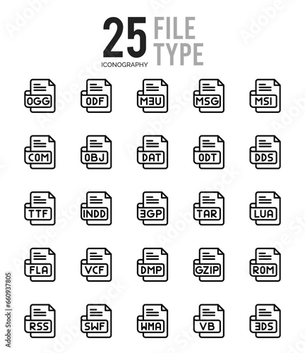 25 File Type Outline icons Pack vector illustration.