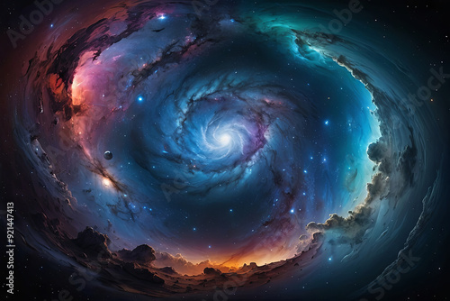 360 degree equirectangular projection space background with nebula and stars