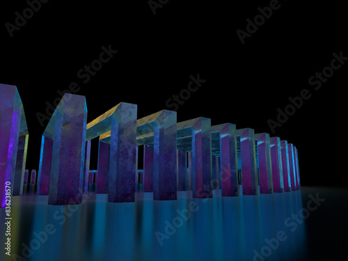 design, cloister, tunnel, light, light, unmanned, solid, three-dimensional, modern, floor, architecture, light, city, business, illustration, wall, pattern, urban, hall, mast, white background, shadow, shape, future, geometrical, gate, blank space, building, square, cross-linkage, curve, sky blue, blue, pink, yellow, icicle, crystal