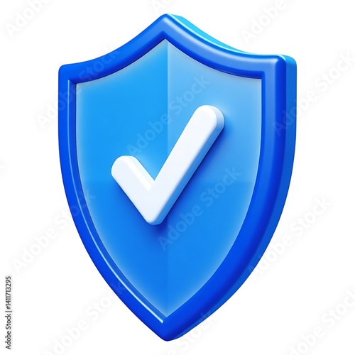 3D Blue Shield Icon Security Checkmark White Background