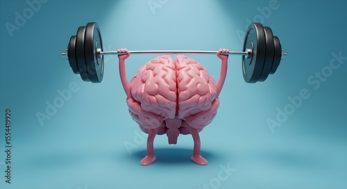 3D Brain Character Lifting Weights Mental Fitness Cognitive Training Intelligence Concept Illustration