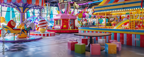 3D carnival-themed birthday with rides and games, lively and entertaining